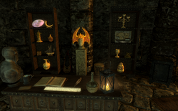 In 4E 176, which is twenty-5 years earlier 4E 201,[seven] when the quests of the Thieves Guild in Skyrim take identify, the Thieves Guild was in a golden age. Their headquarters was a palace, in which they had their ain blacksmith, alchemist, traders, fences, and many associates throughout Skyrim. The Thieves Guild was very powerful and ascendant and was feared and respected by most of Skyrim.[4] Even with the Society being in a Golden Age, the Guildmaster Gallus Desidenius was slowly and carefully organizing and planning long-term heists which included heists on museums, fine art galleries, stores, and regime treasuries in an try to keep and strengthen the Guild's presence in Skyrim. Ane of these heists included the heist of the Optics of the Falmer, which required a deep understanding of the Falmer, their language, and their writing system.[viii]